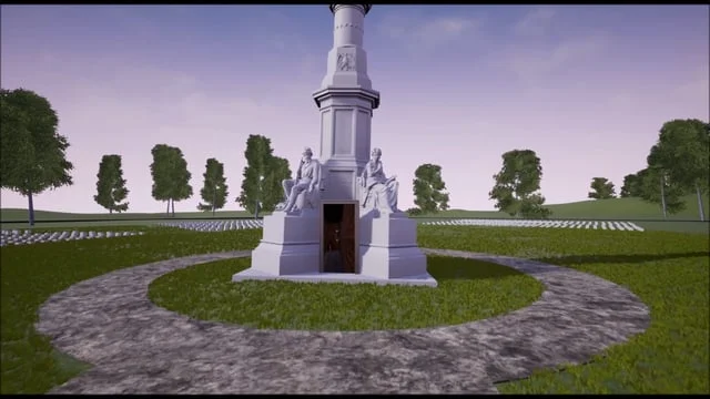 Gettysburg Address VR is an exploration of time travel and documentary techniques in virtual reality. I really stepped out of my comfort zone on this project as most of my works are sort of non physical in nature. In this experience I recreated a portion of the Gettysburg National Cemetery for the user to walk through. The focal point of the cemetery is the Soldiers National Monument. Which the National Parks Service generously let me use for my project. Upon reaching the monument the user is invited to walk through a portal. Upon entering the portal the user is transported into a room in which President Lincoln is writing the Gettysburg Address. Within the room lies another flickering, black and white portal. When the user steps through this last and final portal they are transported to the moment of the speech. The user then assumes the role of Lincoln and gives the speech.